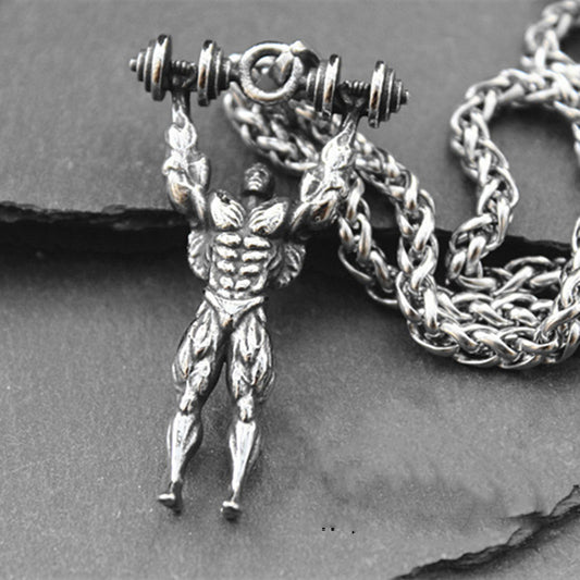 Hand-made Fitness Dumbbells Bodybuilder Pendant Jewelry Necklace