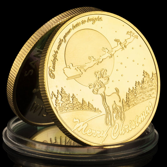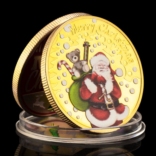 Merry Christmas and Happy New Year Santa Claus Commemorative Coins Gold Plated Christmas Souvenirs