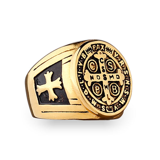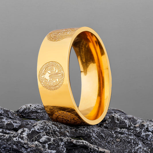 Saint Benedict Exorcism Cross Amulet Stainless Steel Mens Rings Simple Punk