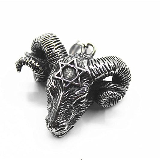 Stainless Steel Hexagonal Star Satan Ram Bull Head Pendant Necklace