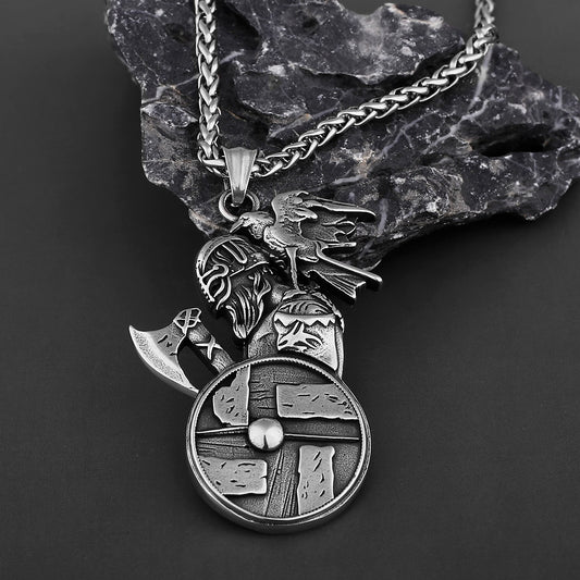 Viking Axe Crow Amulet Men's Pendant Necklace Viking Warriors