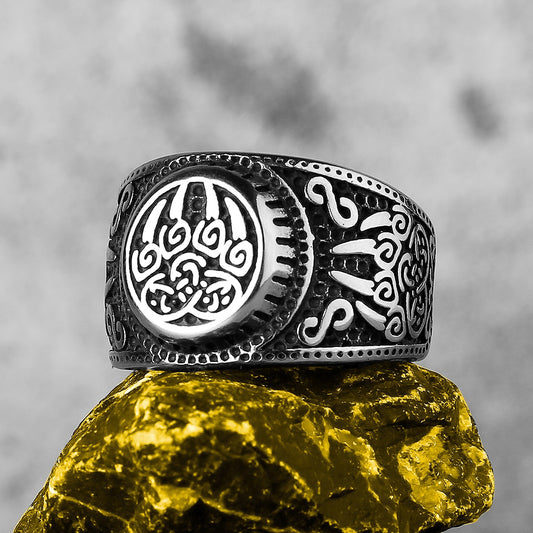 Nordic Mythology Viking Rune Steel Ring Yggdrasill