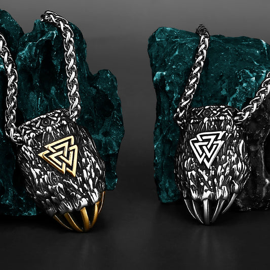Viking Berserker Pendant Necklace Bear Paw with Valknut